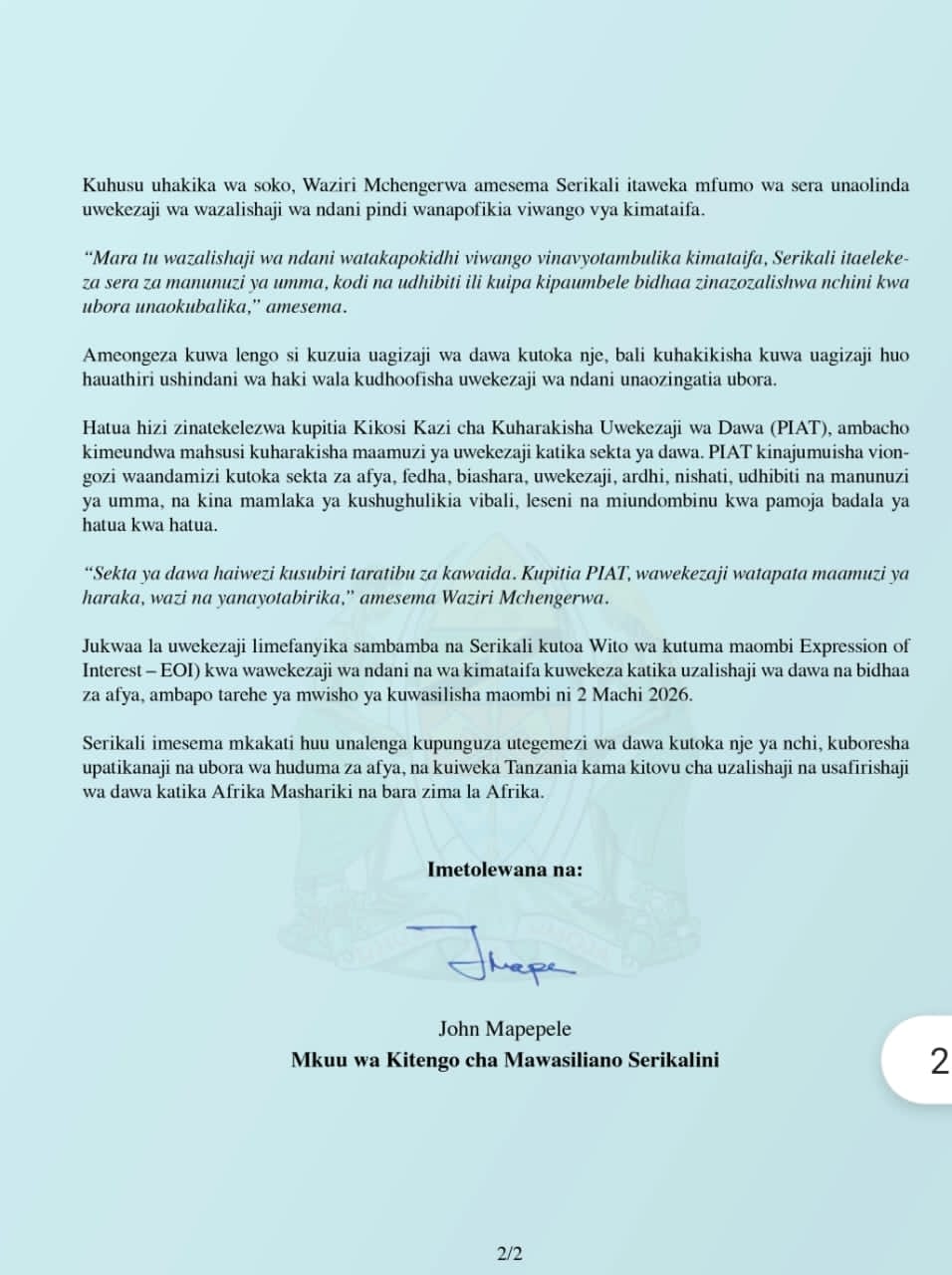TAARIFA KWA UMMA